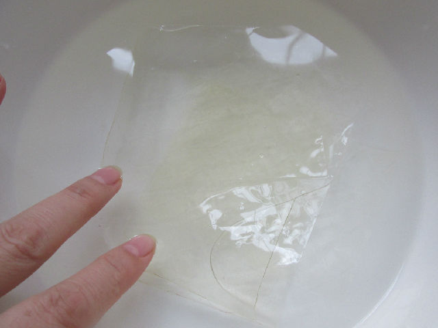 7,把魚(yú)膠片冷水泡軟,隔熱水融化,。