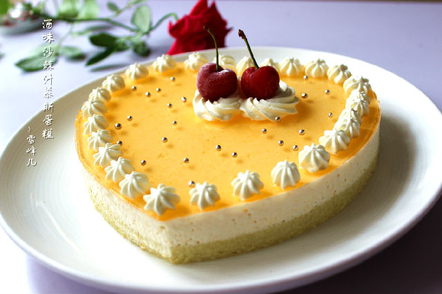 慕斯糊:沙棘汁150克,淡奶油100克,魚(yú)膠片2片。