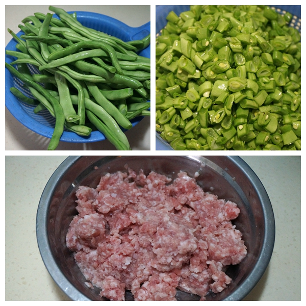1. 豆角去掉兩端和老筋,洗凈;