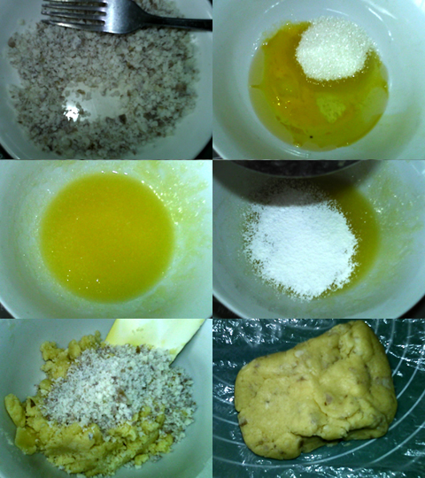 1、菱角去殼取肉,碾碎。蛋液,糖,油倒入碗中。攪打至充分乳化。面粉,泡打粉,小蘇打混合,篩入糖油液中,拌勻。加入菱角泥,拌勻成均勻面團。