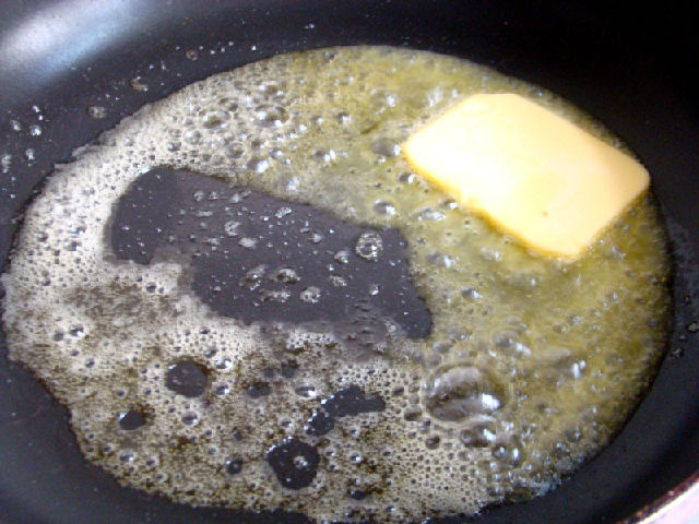 4,炒鍋上火,放入黃油熔化。