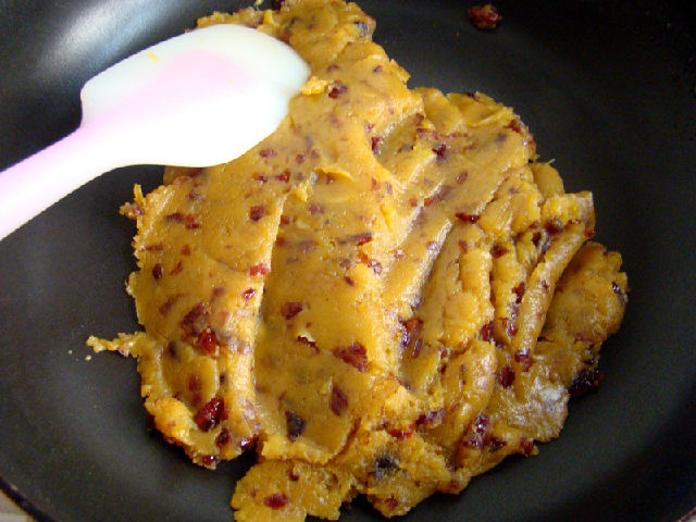 5,加入紅薯泥、白糖和蔓越莓干炒至順滑。