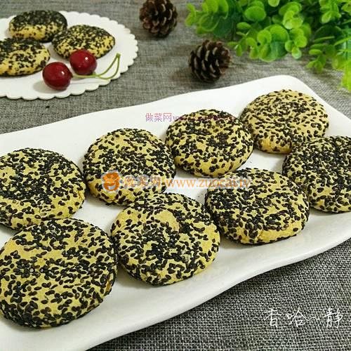 10.用手按扁,成餅狀,防止芝麻掉落,餅厚薄隨意