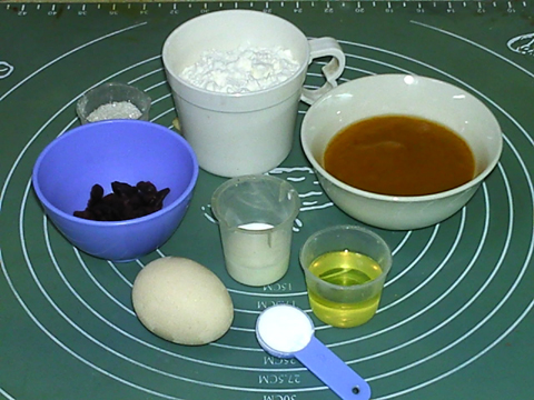 用料:芒果泥95克,細(xì)砂糖20克,玉米油20克,雞蛋1個(gè),低筋粉90克,牛奶10克,泡打粉1小勺,蔓越莓干15克