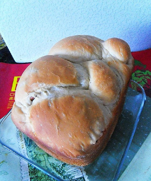 3、這款面包,只用了面包機(jī)的和面和烘烤功能。