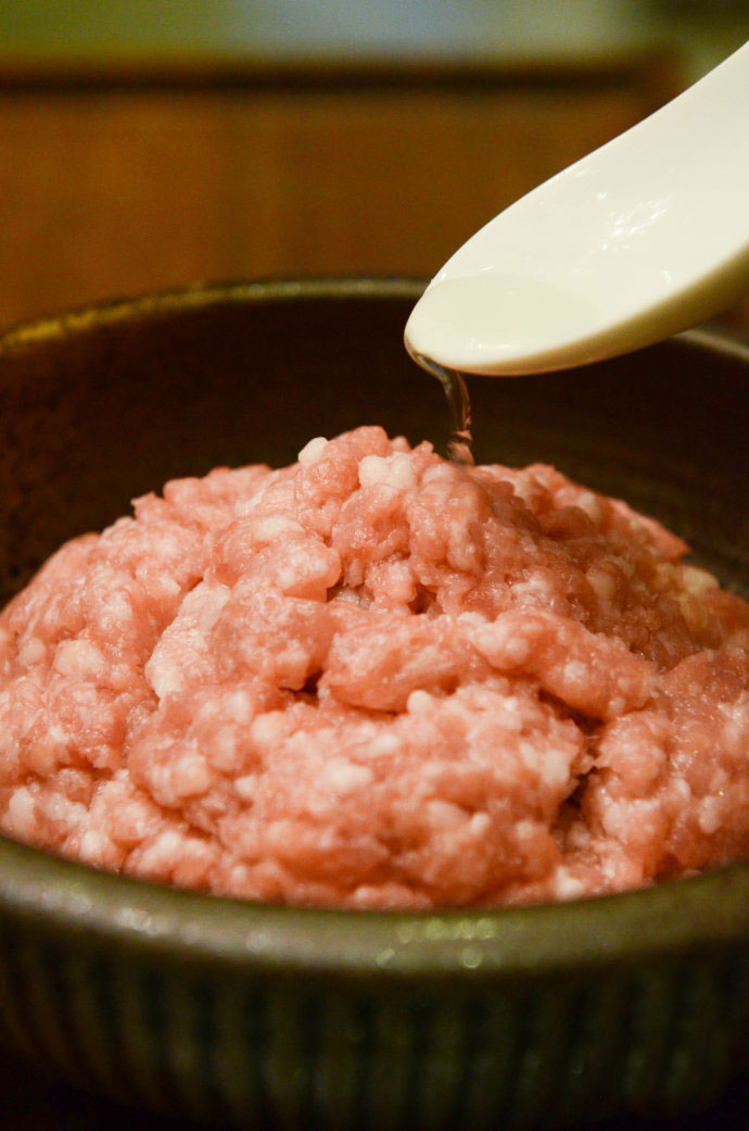 4、提起筷子會有少量肉餡掛在筷頭,不會太稀掛不住,也不會太干一大坨都纏在筷子上;加鹽、糖、雞精調(diào)味