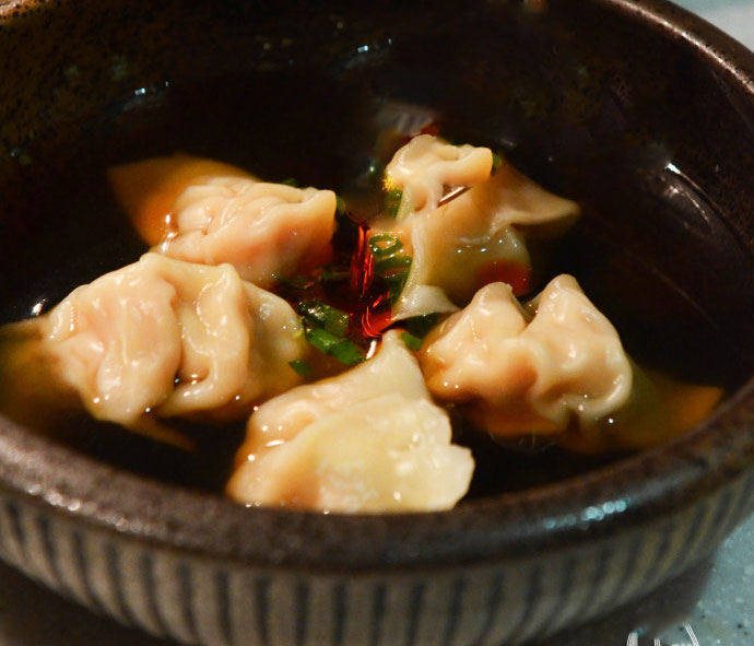 9、大鍋滾水,放入生餛飩,水開后再加兩次冷水煮開,煮好撈出盛入湯里,按喜好滴辣油/撒胡椒/放蔥花。這樣一碗餛飩就完成啦