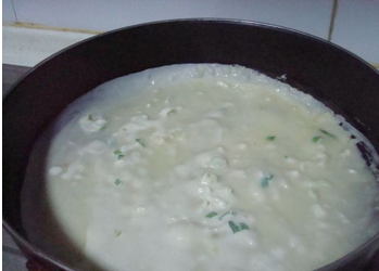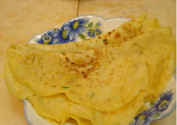 材料:面粉,雞蛋,蔥,鹽,水,雞油