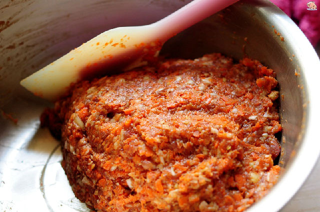 6,與冷藏好的肉餡混合均勻。(此兩步到包餃子時再做)