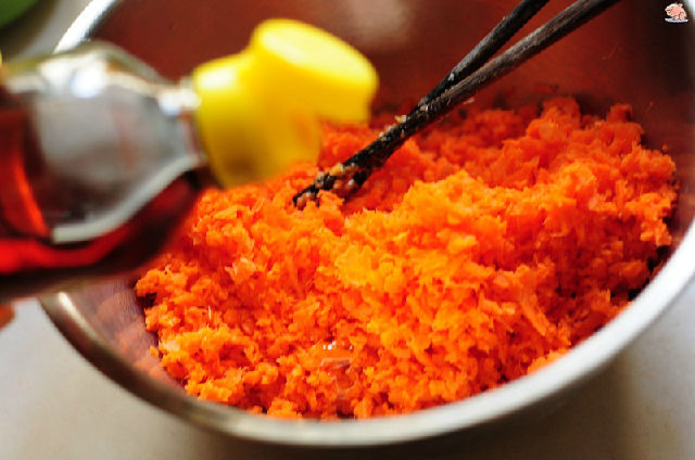 1,胡蘿卜(約2根)切成細長條,用原汁機渣汁分離。