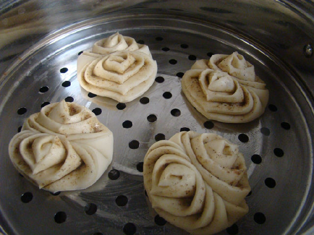 10,鍋中放入冷水,將蒸格上刷一層油,放入生坯,開火,上汽后用中火蒸15--20分鐘。