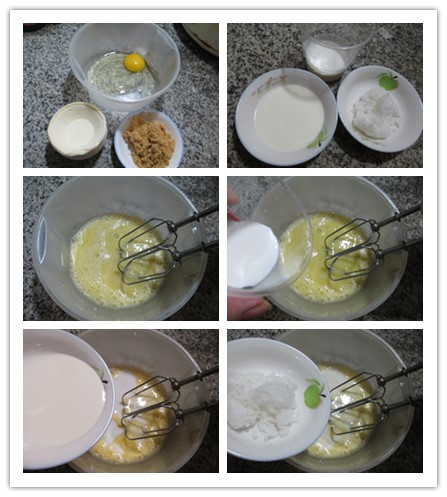 (2)隨后,加入牛奶、加入淡奶油、加入綿白糖拌勻。