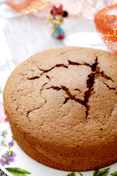好像還從來沒做過可可的戚風,這次就來一個吧,為著某種目的。找了妃娟的方子,減量。仔細看時,卻發(fā)現(xiàn),這個做法跟平日里習以為常的大不相同,牛奶和油居然是要混合加熱來用的。諸事繁雜,不想在未知事件上耽誤時間。于是,依然是妃娟的方子,只是移植了慣常的做法。效果也還是不錯,雖然表面有開裂。好像再也沒烤出過不開裂的戚風了。。。。。