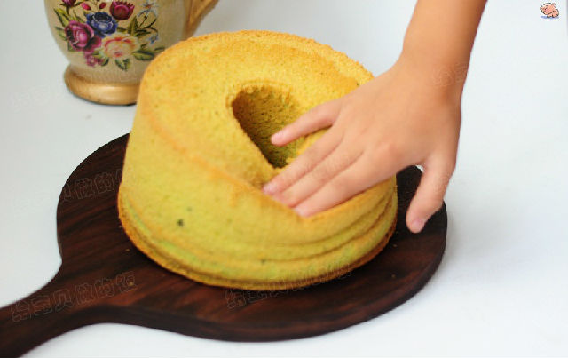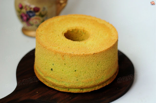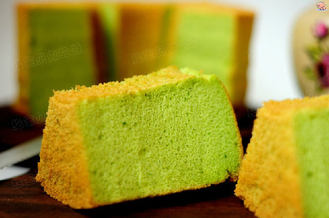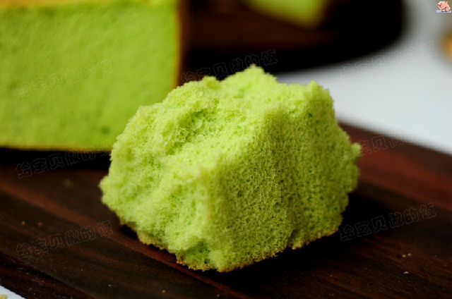 把原味戚風(fēng)中的牛奶換成天然色素菠菜汁,出爐的蛋糕清新秀麗,秀色可餐。
