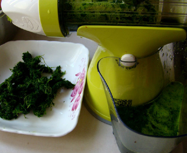 1,菠菜洗凈用原汁機(jī)榨出40克菠菜汁。