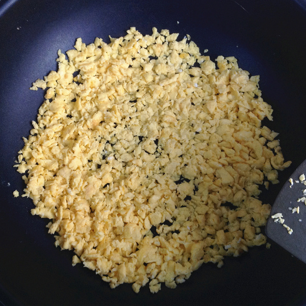 2、四個(gè)雞蛋在碗中打勻下鍋炒熟并壓碎。