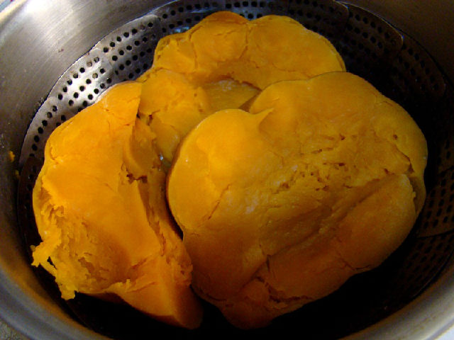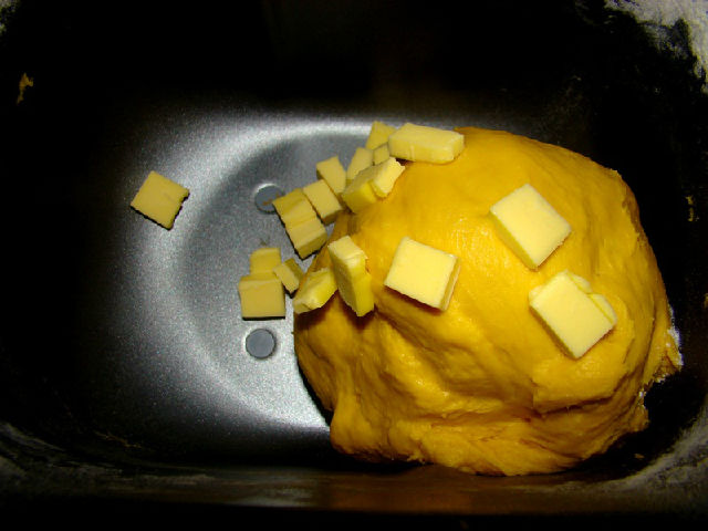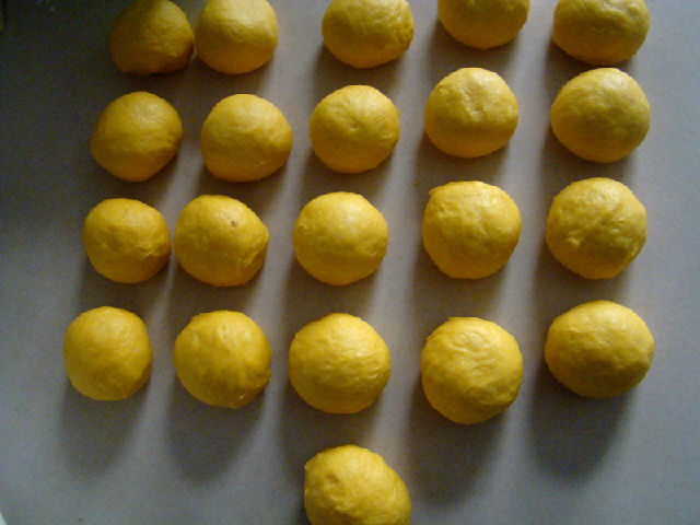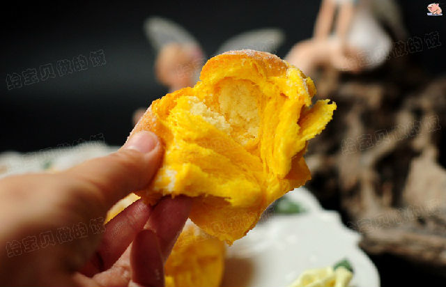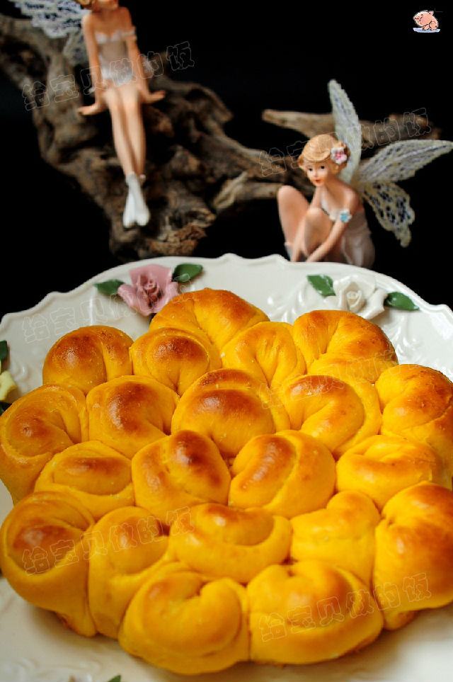 面團(tuán)原料:高粉300克,南瓜泥200克,糖20克,鹽3克,雞蛋1個,酵母3克,黃油25克