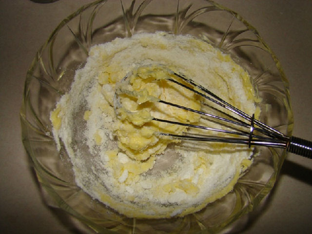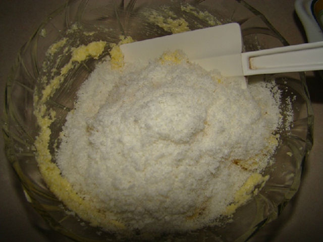 1,椰子內(nèi)餡:把黃油軟化后攪拌均勻。