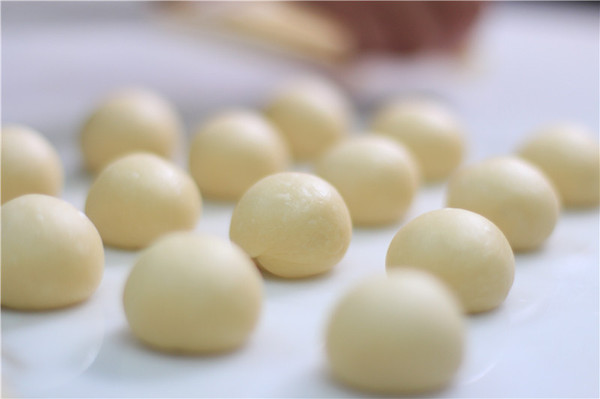 3、將面團(tuán)分成每個(gè)10g的小團(tuán)子,然后搟成細(xì)長條