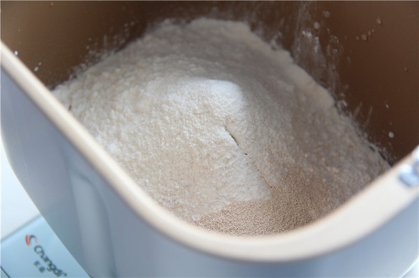 高筋面粉250克、白糖50克、雞蛋1個(gè)、牛奶25克、水60克、酵母3克、黃油20克