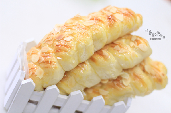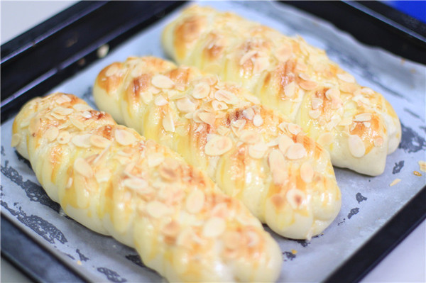 8、剛剛出爐的杏仁片辮子面包香噴噴的