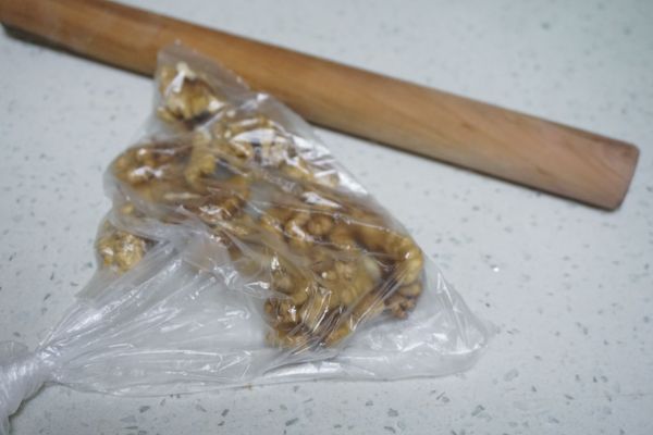 吃貨的心態(tài)總是陽光積極的,等到今天一堆干果到家后,我就開啟了迅速消滅面粉的過程。想著周末老母親過來,立馬心中就有了盤算,老北京人買糕點(diǎn)都愛去稻香村,去了少不了買山楂鍋盔、薩其馬,還有幾塊酥掉渣兒油燦燦的桃酥。桃酥做法簡單,也不需要面團(tuán)的發(fā)酵,香酥的核桃搗碎,揉進(jìn)面粉中,烘烤的時候就飄出陣陣香味兒。