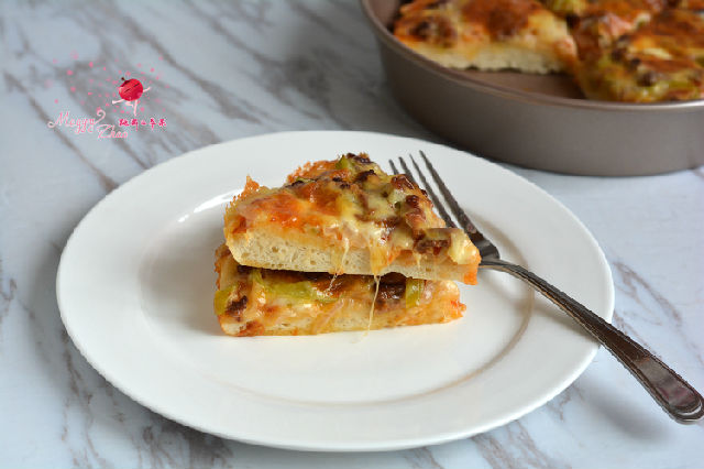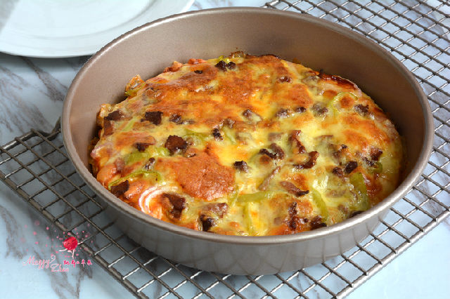 2. 餡料食材可以根據(jù)喜好來(lái)調(diào)整,比如火腿、金槍魚(yú)、海鮮、牛肉粒等均可;蔬菜類(lèi)不宜太多,否則烤完后湯水太多,造成餡料與餅坯分離;
