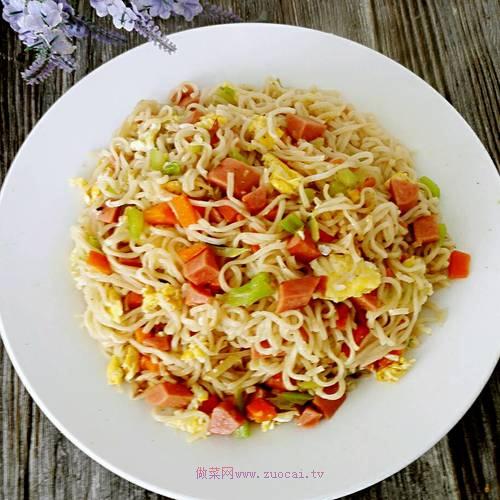 方便面(2袋) 火腿腸(2根) 鹽(適量) 蔥姜蒜(少量)