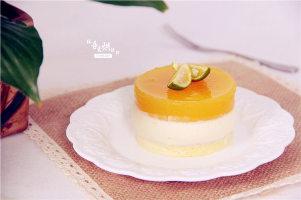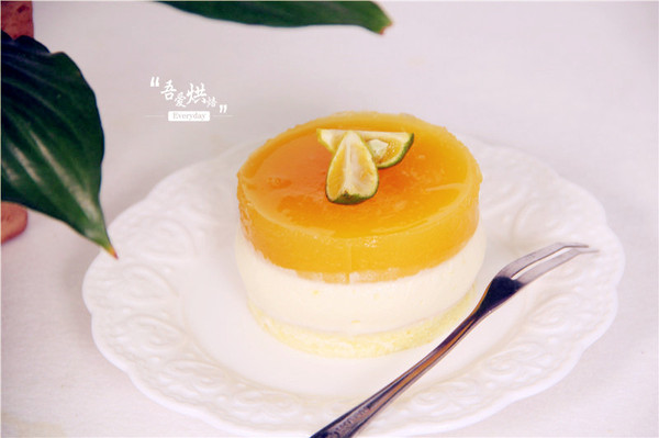 海綿蛋糕片3片、橙子(橙汁)1個(gè)(50克)、淡奶油150克、吉利丁片1片、糖粉15克