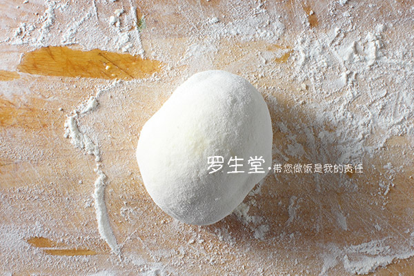 面團(tuán)餳好后非常的柔軟,取的時(shí)候要先往面團(tuán)上撒薄面,手上也得粘薄面才能拿起來不粘手,而且動(dòng)作要快,不然一會(huì)兒還粘手,案板上同樣也要多撒面粉,這樣才能讓面團(tuán)不粘。