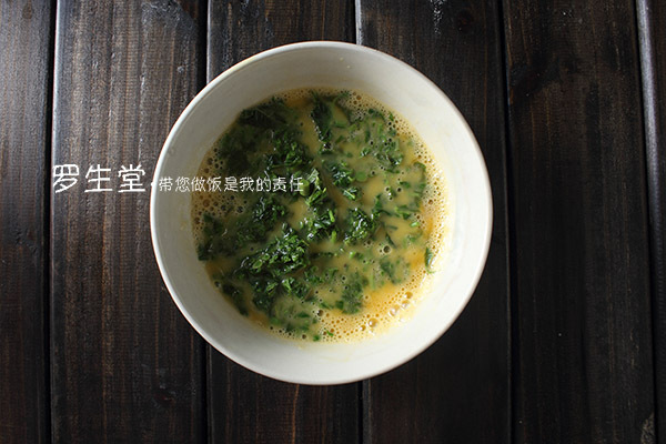 9、香椿洗凈切碎,放雞蛋中打勻,放少許鹽調(diào)勻