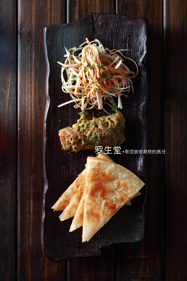 下邊我們來烙餅吧!光吃烙餅沒勁,給大家捎帶弄個(gè)香椿攤雞蛋和豆絲配上
