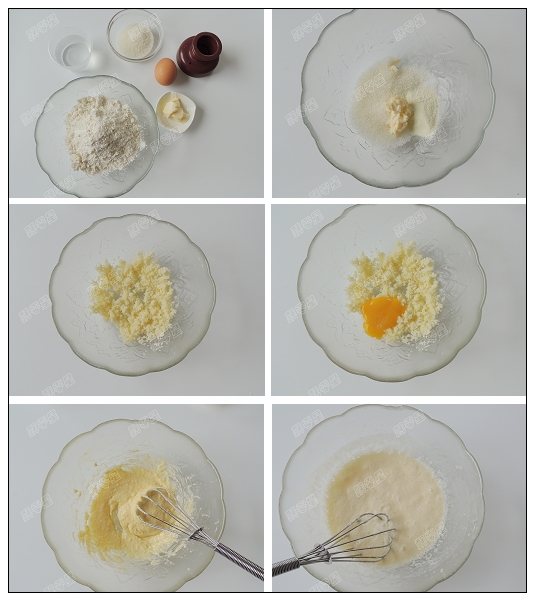 2.黃油軟化以后,加入細(xì)砂糖、鹽、奶粉