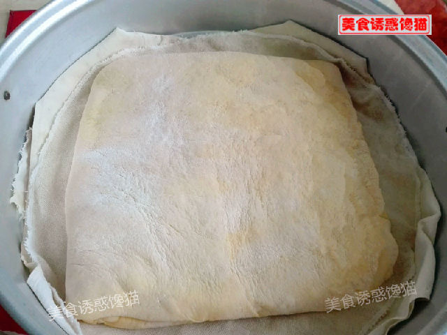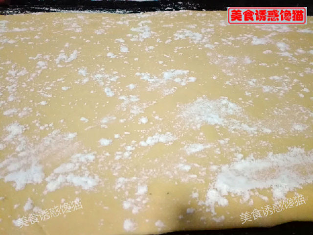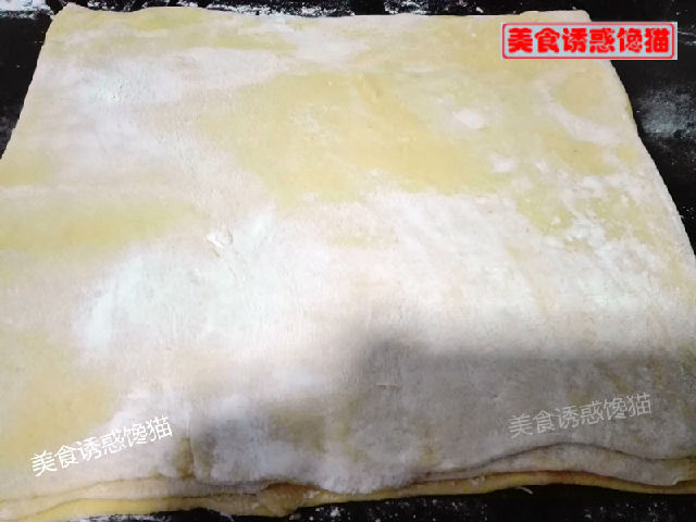 2、在面片上刷一層油后再撒些面粉,起層效果更好。