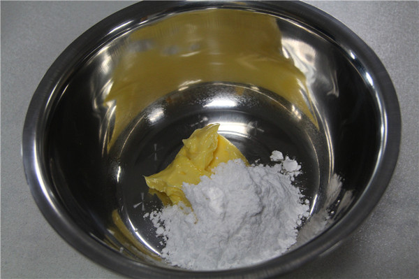1、首先制作派皮:黃油軟化后加入糖粉,用電動打蛋器打發(fā)至體積蓬松,顏色變淺