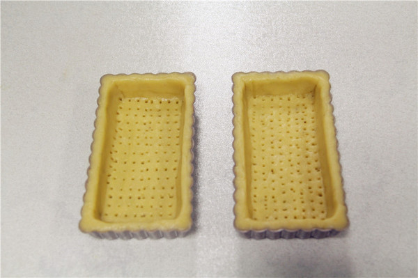 6、用叉子在派皮底部叉上一些孔,防止派皮烤的時候鼓起;然后放入預(yù)熱好的烤箱中層,上下火180度,烤20-25分鐘,直到派皮表面金黃色