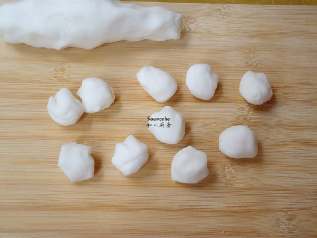 6.多次揉面,最后揉成長條,分均勻的小團(tuán)。