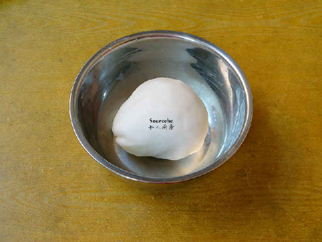 5.加入適量的沸水拌均,蓋上蓋子燜五分鐘,揉成光滑團(tuán);