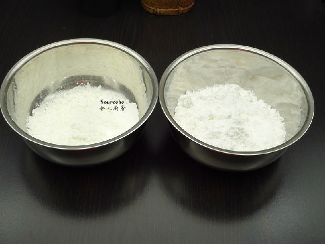 4.水晶餃子皮:準(zhǔn)備好澄粉、淀粉;