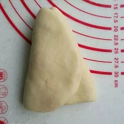 取出面團輕拍排氣,分成5個小面團。