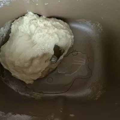 將制作面團需要的食材除椰子油外全部倒入盆中,開始和面。
