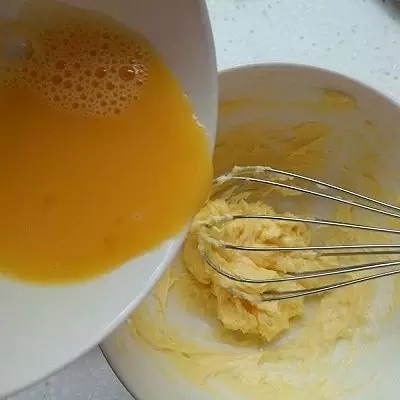 分次加入打散的蛋液攪拌均勻,注意每次要攪拌至完全融合后再倒入蛋液,否則容易水油分離。
