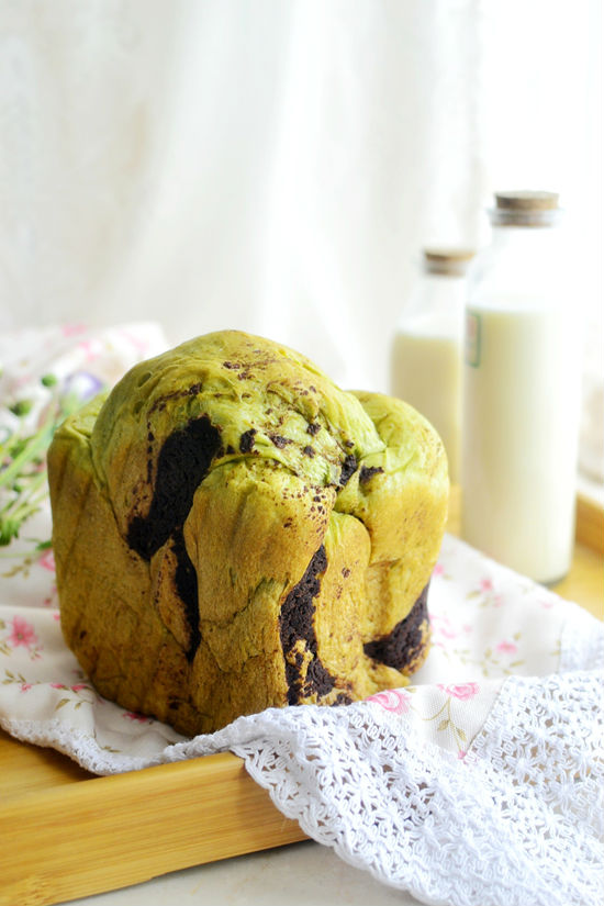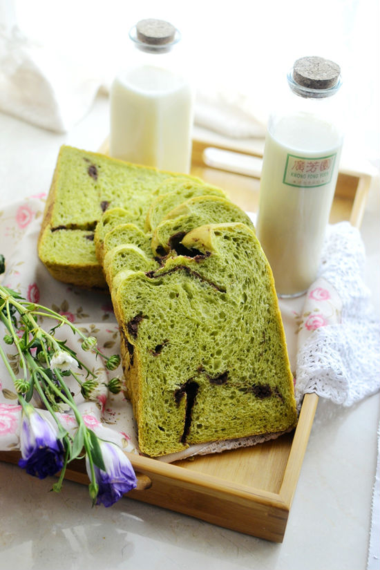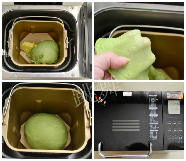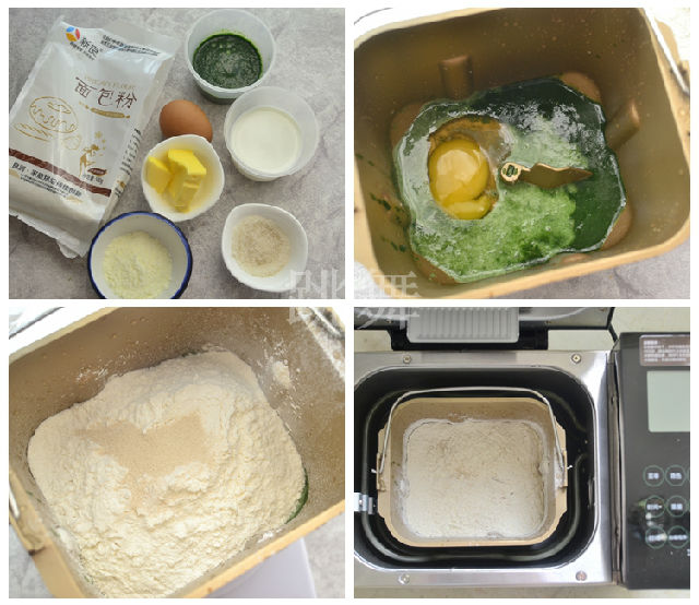 材料:高筋面粉290克 蛋液55克 菠菜汁90克 牛奶40克