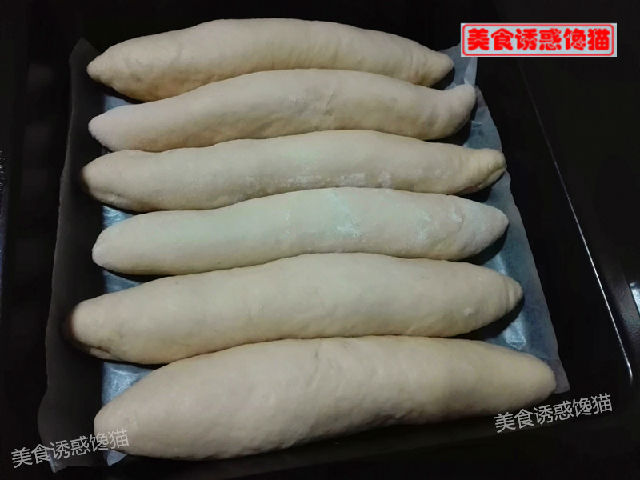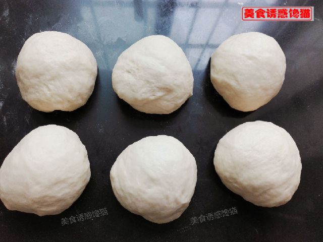 3、發(fā)酵好后將面團排氣,均分為6份。