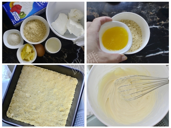 材料:奶油奶酪250克 糖35克 自制濃酸奶35克 淡奶油110克 蛋液55克