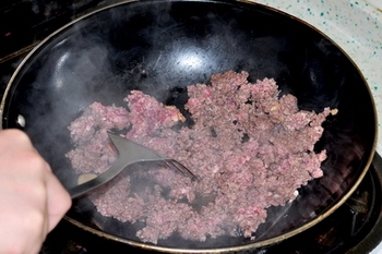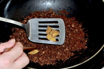 3、干鍋下碼味后的牛肉泥