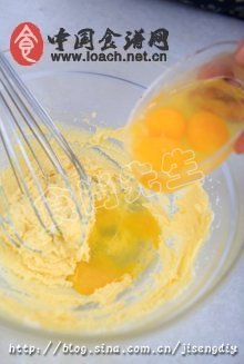 3.將雞蛋分次加入拌至糖化。