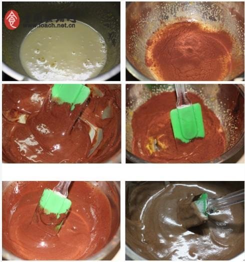 1、巧克力加淡奶油隔水融化,攪拌均勻