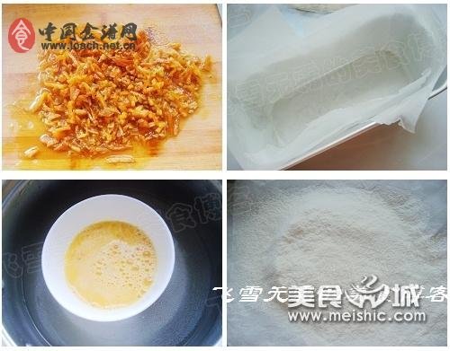 1、事先準(zhǔn)備工作,糖漬橙皮先切成小碎粒,