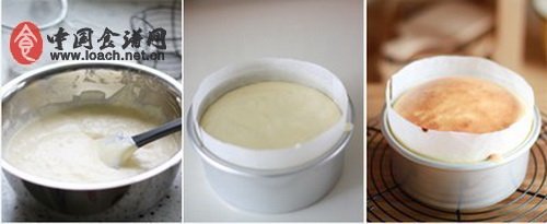 烤箱165度預(yù)熱,同時(shí)底部放一烤盤(pán)水,一同預(yù)熱,把蛋糕模放在倒數(shù)第二排烤網(wǎng)上(水一定不能太少,水少影響口感) 自然冷卻后脫模,冷藏后食用味道更加(我用的6寸圓模,先在模具里均勻涂一層黃油,然后放入油紙貼合緊密)
